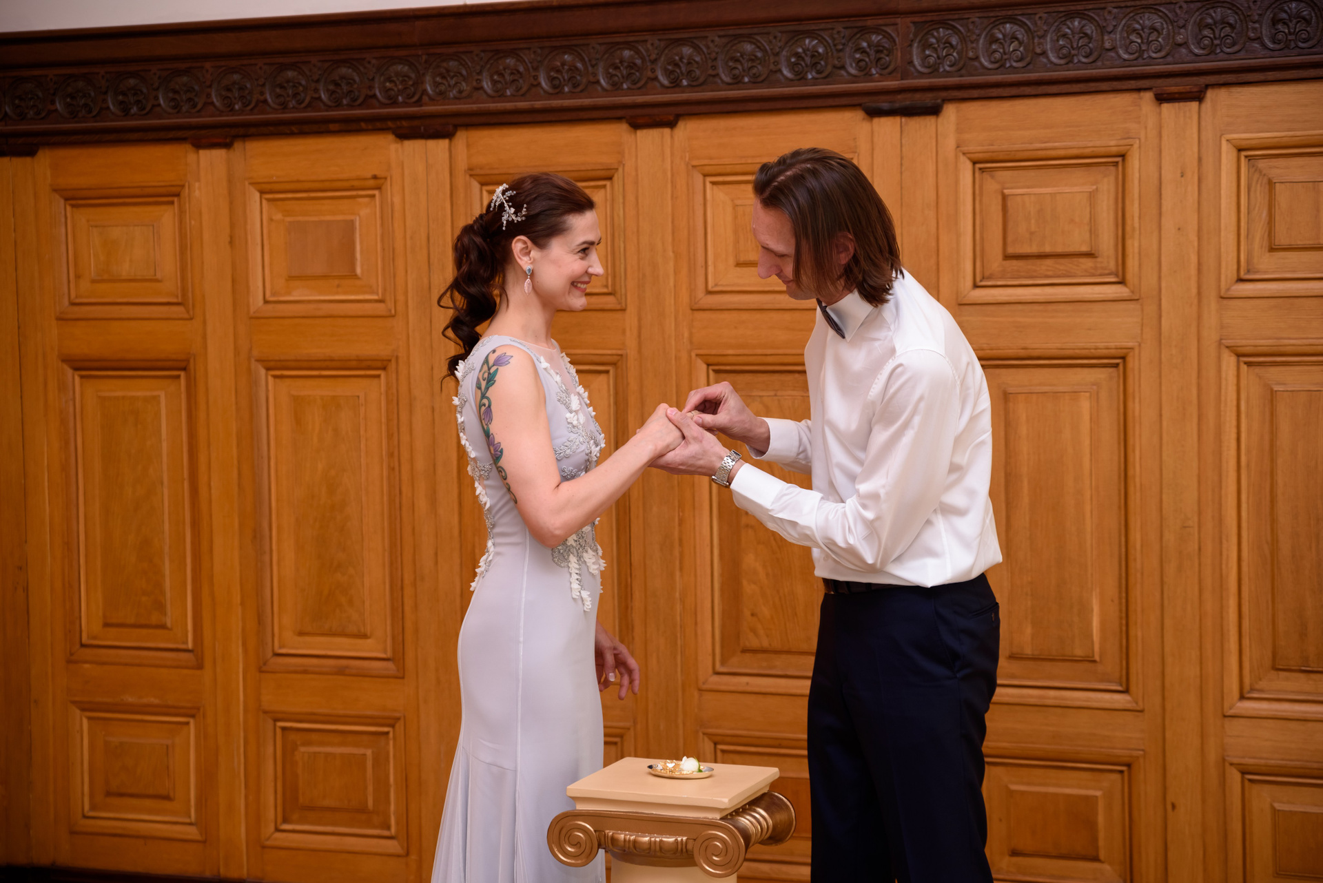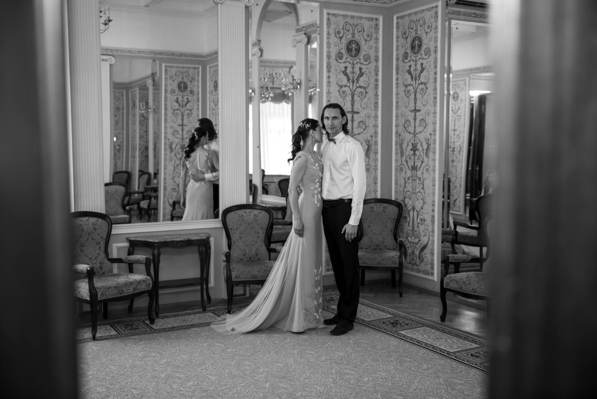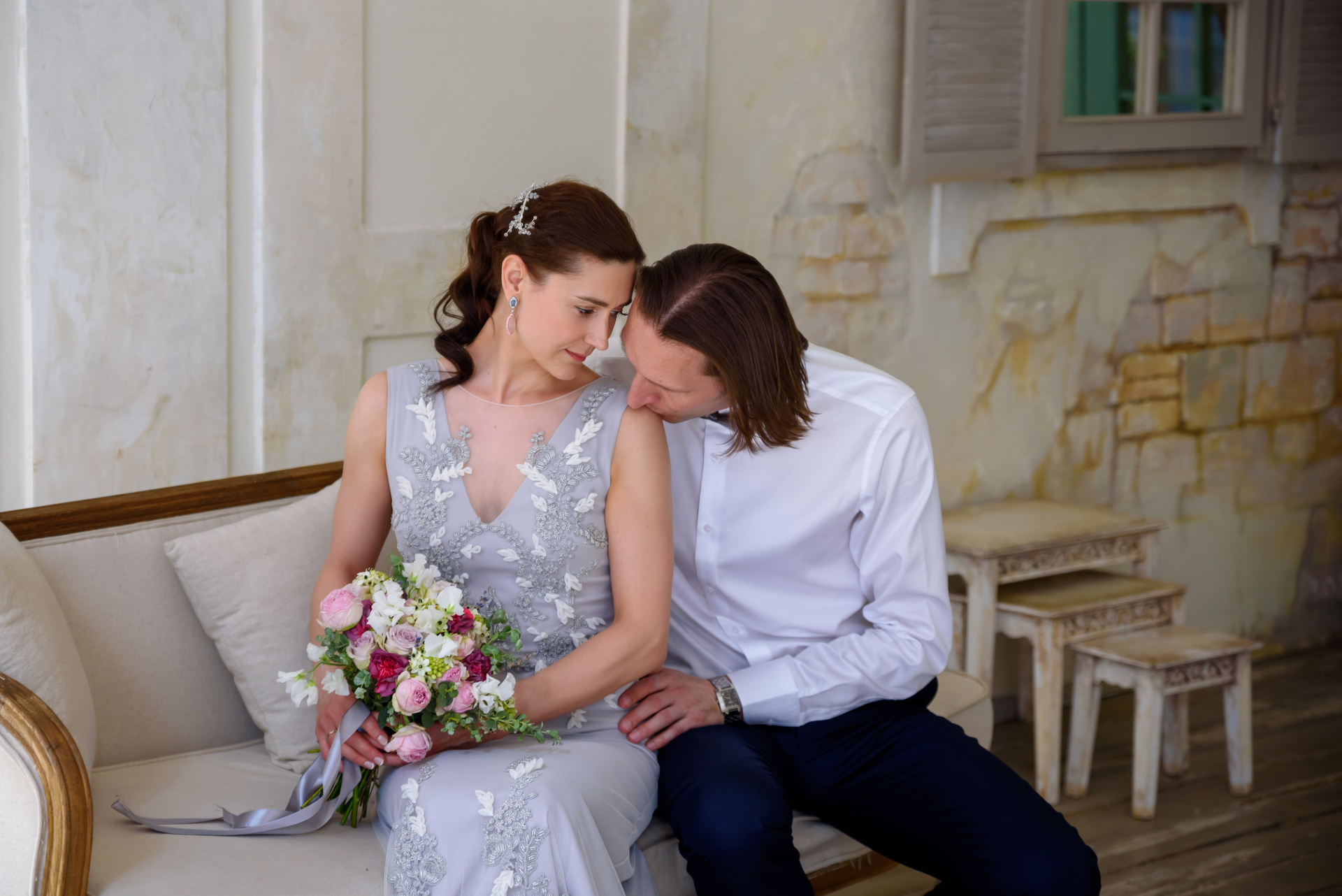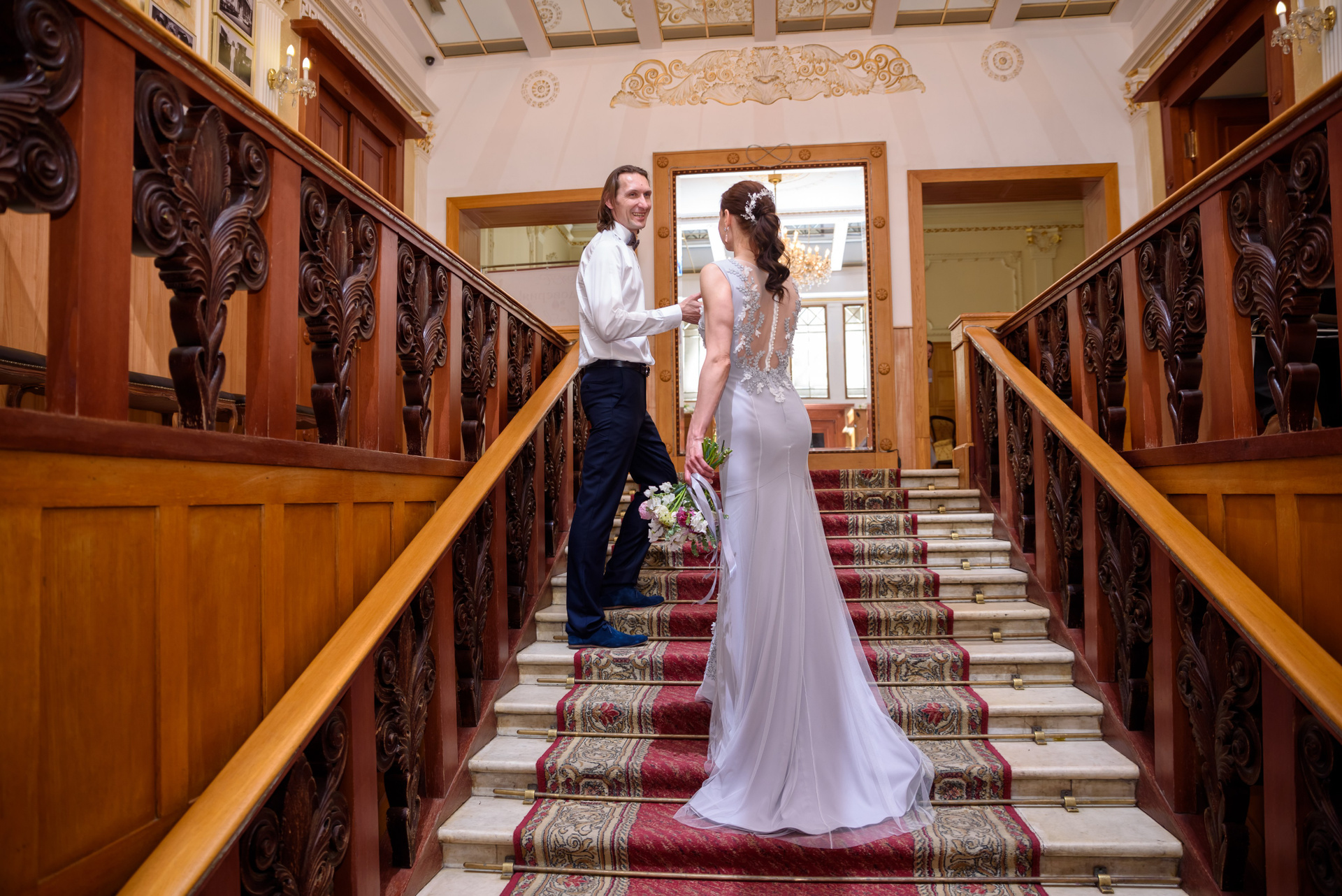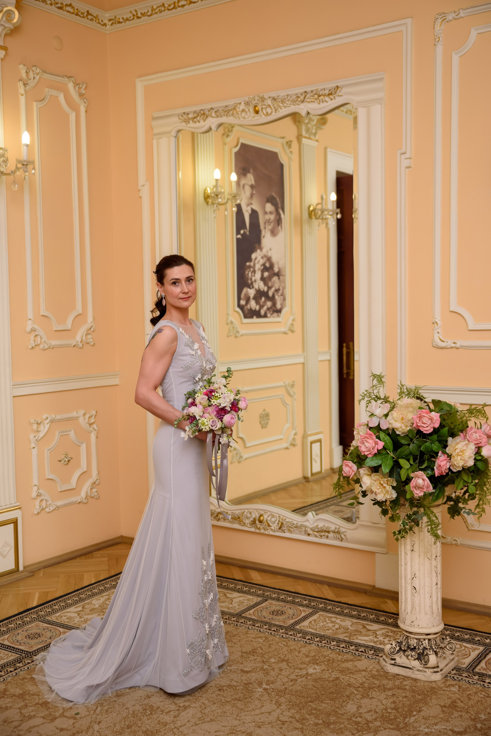 Расскажу немного про эту свадьбу. Фотосессия длилась 3 часа. 1 час — загс и 1 час в фотостудии и 1 час был заложен про дорогу и небольшую прогулку около ЗАГС. Регистрация была в Грибоедовском ЗАГСе.
